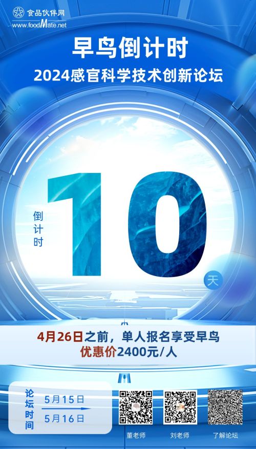 為促進感官科學技術創新發展,食品伙伴網聯合浙江省食品學會將于2024年5月在杭州舉辦“2024感官科學技術創新論壇”,攜手業界大咖、行業精英共襄盛會,共同探討感官科學技術領域的新科研成果、新技術應用,搭建一個行業內自由交流、信息分享、合作的平臺,促進感官科學技術的良性發展。