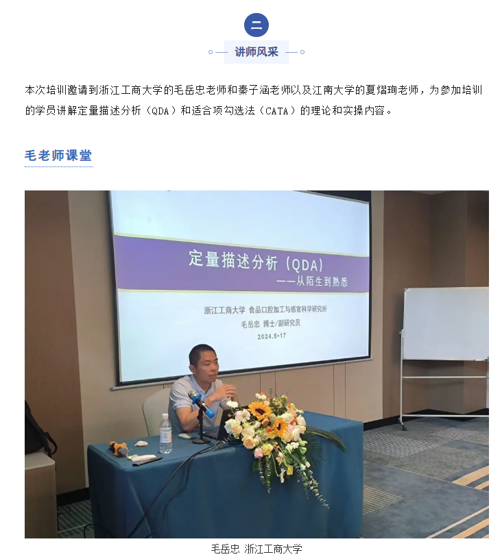 本期培訓(xùn)班為期兩天,通過專家分享、實操體驗、討論交流、風(fēng)采展示等多種形式,幫助學(xué)員梳理感官系統(tǒng)理論知識,感官方法落地應(yīng)用,講解感官技術(shù)難點。