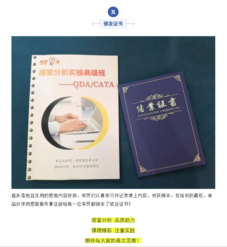 2024年5月17-18日,由食品伙伴網(wǎng)主辦的SEPA 感官分析QDA/CATA 實操培訓(xùn)班在杭州萬信瑞鉑酒店圓滿結(jié)束!來自豐益、貴州習(xí)酒、雅培、伊利伊諾科技等多家企事業(yè)單位學(xué)員參加了此次培訓(xùn)。