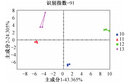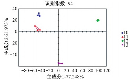生地黃電子鼻分析結果懷區不同主栽品種生地黃鑒別