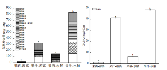 圖3 百香果果汁及果酒的氨基酸含量