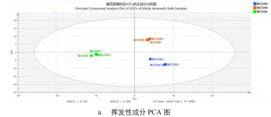 圖2 3個(gè)市售霉莧菜梗的電子鼻分析結(jié)果