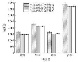 圖5 3種色澤氣流膨化青稞米的電子舌響應器柱狀圖